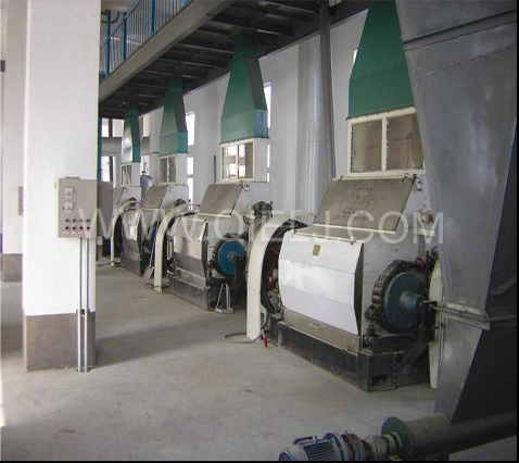 軋胚工序:采用液壓緊輥軋胚機(jī),較好的破壞油料細(xì)胞組織,以保證軋坯片薄而均勻,有韌性,粉末度小。